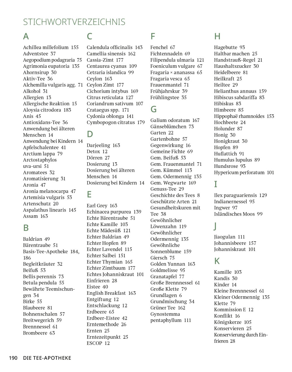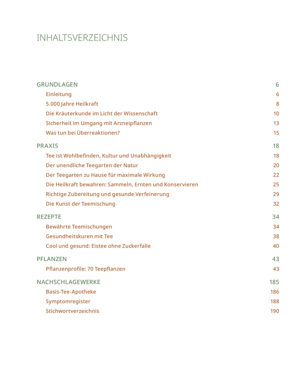 Damit du dir schnell einen Überblick verschaffen kannst, ist die Tee-Apotheke in fünf sinnvolle Bereiche gegliedert:
