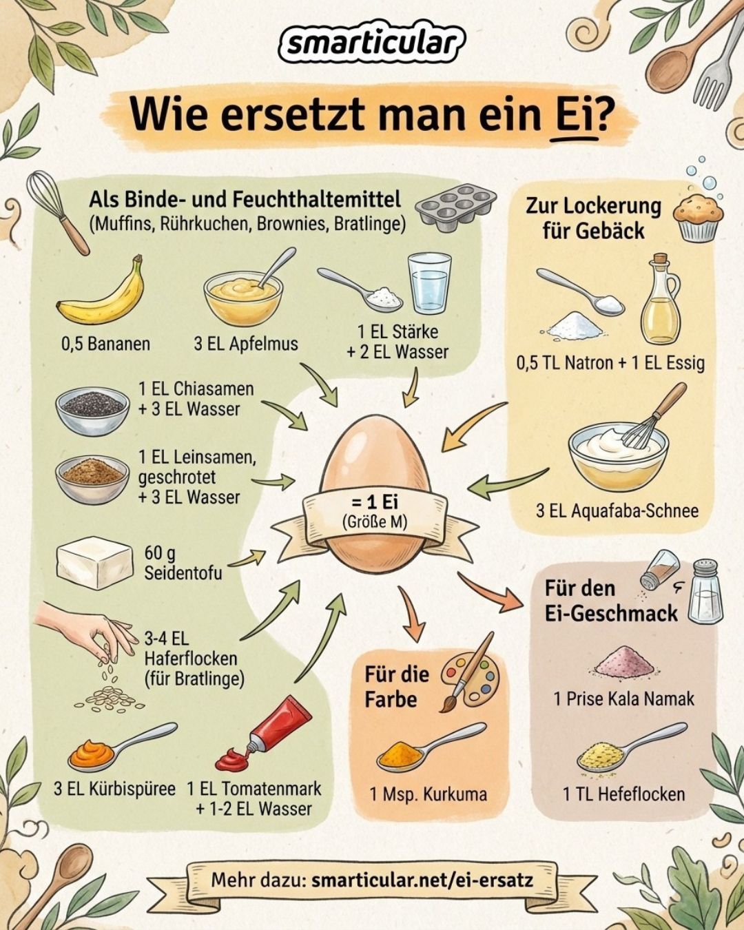 Hier findest du nochmal eine übersichtliche Zusammenfassung aller Ei-Alternativen inklusive ihrer Funktion.