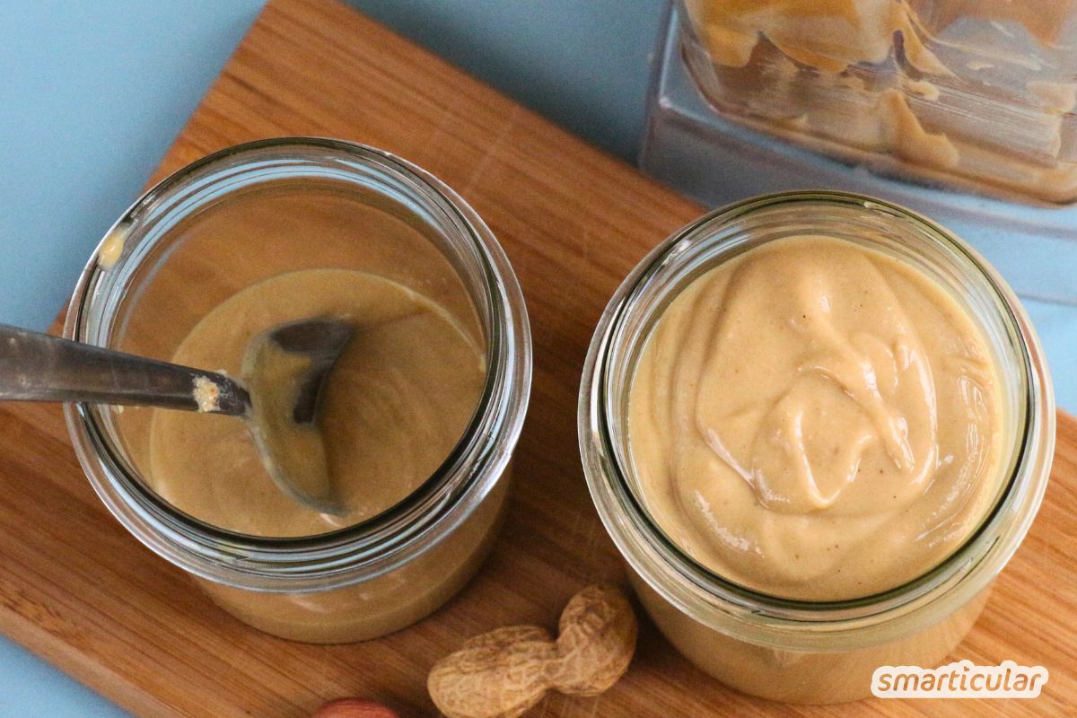 Statt fertige Erdnussbutter zu kaufen, ist es viel günstiger, wenn du sie aus Erdnüssen selbst herstellst. So umgehst du auch Palmöl oder andere fragwürdige Fette, unnötig viel Zucker sowie Konservierungsstoffe, die in handelsüblichen Produkten häufig enthalten sind. In diesem Beitrag erfährst du, wie es geht.