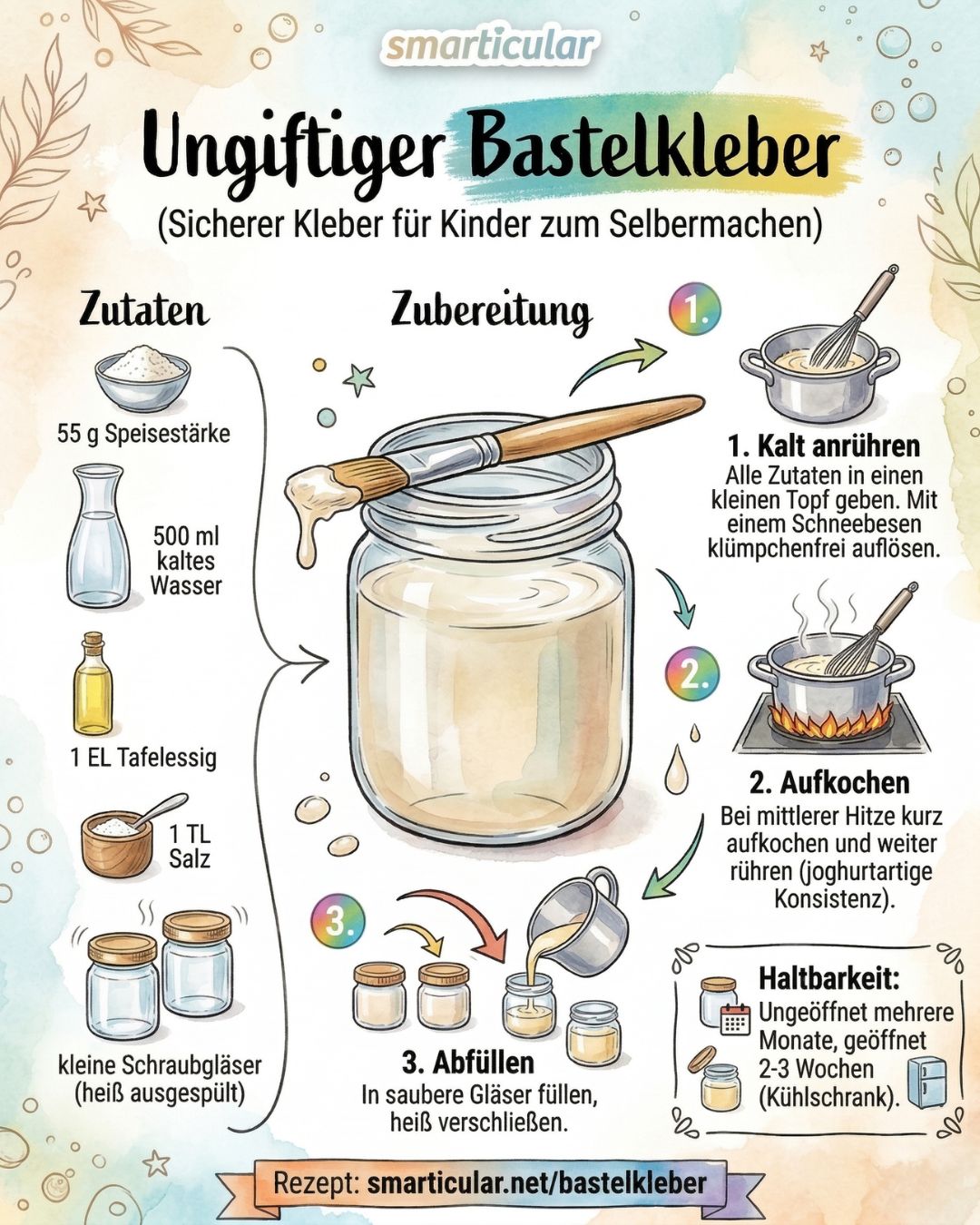 Essbaren Klebstoff zum Basteln für Kinder selbermachen – ungiftig, wasserlöslich und haltbar
