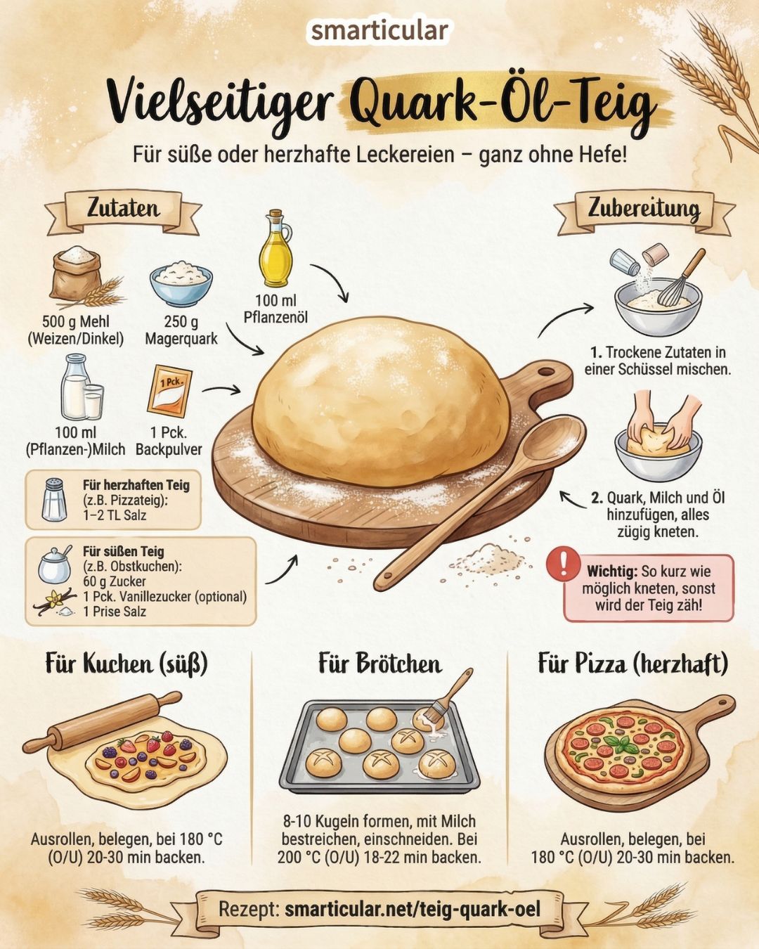 Quark-Öl-Teig selber machen: Schnelle, vielseitige Alternative zu Hefeteig