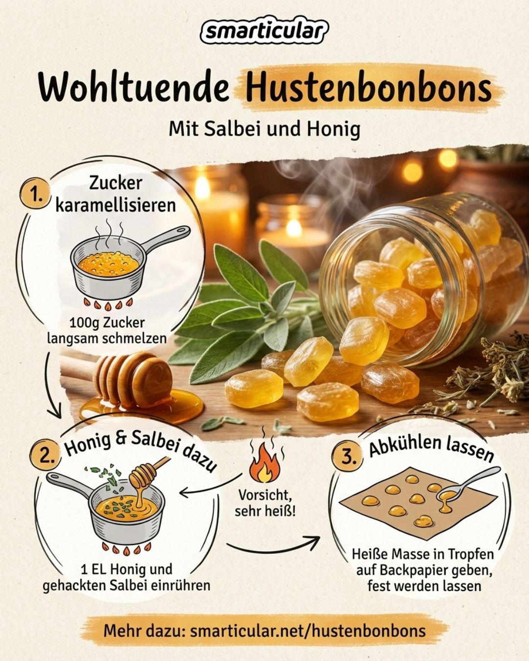 Hast du schon einmal Salbeibonbons selber gemacht? Wir freuen uns auf deine Erfahrungen in einem Kommentar!
